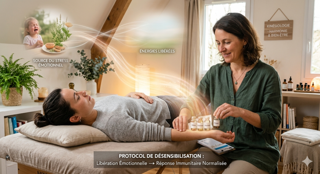 Une fois l'allergène confirmé, le kinésiologue procède à une phase de découverte de l’émotion à l’origine de l’association entre le stress et l’allergène. Vient ensuite la phase de reprogrammation. Le but est de "réinitialiser" la mémoire du corps pour qu'il cesse de considérer cette substance comme une menace.